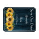 Anuncie seu próximo dia de casamento para a família e convidados com uma Imã salve a data Rústica de Girassol Azul. Design de ímã apresenta um fundo de madeira rústico com um buquê elegante de girassóis. Personalize com os nomes do noivo e da noiva junto com a data do casamento. Papelaria de casamento e presentes disponíveis com esta design também.