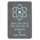 Quadro atômico bonito e nerd Salve o Magnet Premium de data apresentando um símbolo atômico simples em azul claro em um fundo de aparência de quadro. Esta imã salve a data engraçada e engraçada é perfeita para anunciar seu casamento temático de ciência! Fácil de personalizar, basta adicionar os detalhes do seu casamento nos espaços fornecidos. Clique em "Personalizar" para encontrar mais opções de personalização.
