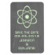 Quadro atômico bonito e nerd Salve o Magnet Premium de data apresentando um símbolo atômico simples em verde de casa em um fundo de aparência de quadro. Esta imã salve a data engraçada e engraçada é perfeita para anunciar seu casamento temático de ciência! Fácil de personalizar, basta adicionar os detalhes do seu casamento nos espaços fornecidos. Clique em "Personalizar" para encontrar mais opções de personalização.
