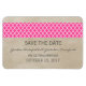 Quatrefoil Russo Elegante e sofisticado Salve o Magnet Premium de Data com um fundo de aparência texturizado vintage e um limite moderno de padrão em magenta. Fácil de personalizar, simplesmente adicione seus detalhes de casamento. Clique em "Personalizar" para encontrar mais opções de personalização.