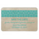 Lace Russo Simples e elegante Salve o Magnete Flexi Premium de Data com um papel texturizado de vintage e uma borda de padrão de renda doce e delicada em turquesa. Fácil de personalizar, simplesmente adicione seus detalhes de casamento. Clique em "Personalizar" para encontrar mais opções de personalização.