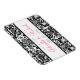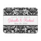 Um imã bonito com cor damasco mostra sua data de casamento e seus nomes.