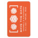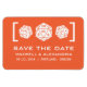 Esta Imã salve a data D20 Dice Gamer em laranja é perfeita para o casal nerd que se apaixonou por um interesse comum em jogar e gostaria de anunciar seu casamento exibindo esta parte de suas personalidades. Esta design ofuscada apresenta uma trio simples e minimalista de vinte lados. Fácil de personalizar, basta adicionar os detalhes do casamento nos campos de texto fornecidos. Clique em "Personalizar" para encontrar mais opções de personalização.