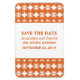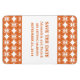 Simples e elegante Imã salve a data moderna em laranja com um padrão deco de na moda. Esta imã salve a data chic é fácil de personalizar com seus detalhes de casamento. Clique em "Personalizar" para encontrar mais opções de personalização.