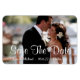 Imã salve a data personalizada mostrada com um exemplo de impressão fotográfico de um casal. Personalize este item e altere a foto e data do exemplo para o seu. Imagem do stock de imagem all-free-download.com