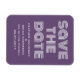 Imã salve a data retrorativa em roxo e branco com uma design de tipografia moderna funky. Esta tendência e imã salve a data de na moda é fácil de personalizar com seus detalhes de casamento. Para obter mais opções de personalização, clique no botão Personalizar Ti.