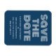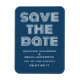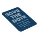 Imã salve a data retrorativa em azul e branco com uma design de tipografia moderna funky. Esta tendência e imã salve a data de na moda é fácil de personalizar com seus detalhes de casamento. Para obter mais opções de personalização, clique no botão Personalizar Ti.