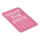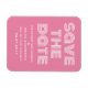 Imã salve a data retrorativa em cor-de-rosa e branco com uma design de tipografia moderna e funda. Esta tendência e imã salve a data de na moda é fácil de personalizar com seus detalhes de casamento. Para obter mais opções de personalização, clique no botão Personalizar Ti.