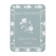 Anuncie seu próximo dia de casamento para a família e convidados com uma Imã salve a data de Rosa Azul Dusty. O design do Magnet apresenta rosas brancas e fundo em camadas correspondentes. Personalize com os nomes do noivo e da noiva junto com a data do casamento. Papelaria de casamento e presentes disponíveis com esta design também.