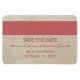 Damasco Russo Elegante e chic Salve o Magnete Premium com um papel texturizado vintage e uma borda cor damasco florescente em vermelho escuro. Fácil de personalizar, simplesmente adicione seus detalhes de casamento. Clique em "Personalizar" para encontrar mais opções de personalização.