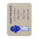 Esta bela imã salve a data é uma maneira na moda, longa e duradoura de anunciar o seu grande dia. Personalize o ímã alterando o texto nos campos fornecidos. Você pode alterar o estilo, o tamanho e a cor da fonte.
