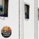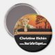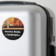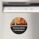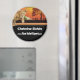 Cena Safari MAGNET (ou nome de etiqueta) com cubo de leão, pôr do sol e tribo africano sob colagem de árvores Acacia (foto de leão tirada por Christine Eichin enquanto está em um safari africano no setor de Ishasha, no Parque Nacional da Rainha Elizabeth, em Uganda) - Acima e Além de África, Seu Especialista Safari, 1-877-GO-SAFARI, www.YourSafariExpert.com