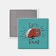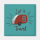 O design retrô deste ímã lembra os anúncios de impressão nos anos 50 e 60, com uma campista de lágrimas em vermelho e prata vintage e a frase "Vamos viagem!" Da minha imagem original criada digitalmente.