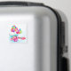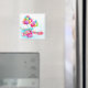 Um imã de aniversário feliz com balões multicoloridos e presentes.