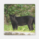 Embalagem de gato-do-mato-preto na grama e na área arborizada.