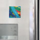 Penas de artesanato vermelho-claro, aqua, amarela, laranja, verde e azul fazem deste ímã único