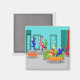 Este Retro Classic Television Magnet leva você de volta a um tempo mais simples. O desenho animado ao estilo de 1960, minimalista, fará com que você procure os créditos iniciais. A design mostra uma sala de estar moderna, afundada, de meio século, com paredes rasas e turquesas e uma lareira vermelha, em forma de cone, completa com um fogo rajado. Todos os olhos estão no leitão, homem da casa enquanto ele faz sua entrada. O bonito Senhor está vestindo um terno azul e gravata laranja. Sua adorável Sra. e enérgica, jovem filho, estão apressados para cumprimentá-lo. A senhora da casa está vestindo um vestido de bainha rosa e quente, que ela enche em todos os lugares certos. A sacudir no cabelo escuro dela é pura perfeição. Júnior está vestindo uma camisa vermelha e jeans azuis para seu traje para ver se seu pai lhe trouxe alguma coisa. Uau! Não derrube a fábrica de cera, Junior! No nível inferior, podemos ver um sofá verde e uma mesa de café laranja. Espera! Parece que temos convidados! Sentados no sofá estão um homem de cabelos escuros com terno azul e gravata vermelha, ao lado de uma mulher loira em forma de vestido vermelho com um arco vermelho no cabelo. Ei! São trabalhadores Pais. Como eles chegaram lá primeiro? É um dos eternos mistérios da televisão. Parece que estamos prontos para uma noite de excelente nos subúrbios sitcom. Mas, primeiro, temos que ver se o Pai vai tropeçar no otomano laranja ou desviá-lo com algum trabalho de rico. A zanidade! A única coisa que falta nesta cena é a canção-tema. E, se vocês ouvirem atentamente, vocês provavelmente podem ouvi-lo em suas mentes.