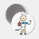 Um padeiro com um chapéu de chef e um botão de bolo que pode ser personalizado com um nome.