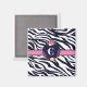 Um ímã quadrado de duas polegadas que tem um padrão zebra preto/branco com um design de monograma floral. Você pode adicionar seu nome e inicial a este produto usando o modelo personalizado.