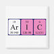 Aric se soletra como Ar I C (Argon Iodine Carbon) em um ímã para o cientista em você.
