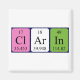 Clarin se soletrava como Cl Ar In (Chlorine Argon Indium) em um ímã para o cientista em você.