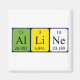 Alline soletrado como Al Li Ne (Aluminium Lithium Neon) em um ímã para o cientista em você. Não consegues encontrar o que queres?