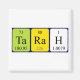 Tarah escreveu como Ta Ra H (Tantalum Radium Hidrogênio) em um ímã para o cientista em você.