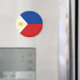 A bandeira das Filipinas foi cuidadosamente adaptada à forma circular deste ímã. Uma forma decorativa de promover a cultura filipina.