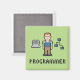 Imagem de arte em pixel representando um programador, um computador e um fluxograma.