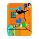 Este feliz Retro Parents Flexi Magnet mostra uma mãe e um pai se regozijando enquanto seu filho faz um trajeto para o ônibus escolar. A dupla celebradora está no estilo, moderno meio século, de 1960. O decor laranja é tudo menos subestimado. Há taruga, lareira de cone e uma clara, azul, cadeira de ovo contra uma parede laranja, de pedra. Na parede, há o Meio século Modern Globe Art Stretered Canvas Print, que está disponível na própria loja Zazzle da StrangeLittleOnion. No chão, há um gravador portátil azul e preto com vários álbuns de vinil espalhados por perto. Pai, está vestindo um terno preto com uma camisa azul clara e uma gravata azul mais escura. Ele está quebrando todas as suas melhores jogadas de dança — do tipo que traria rolos de olho de júnior. Mamãe está vestindo um vestido verde vibrante e um avental branco e floncy com trim azul. Ela está em frente a portas de vidro deslizantes torcendo alegremente enquanto seu filho corre pela calçada da frente em direção ao esperado ônibus escolar amarelo. Através das portas, podemos ver seu gramado suburbano perfeitamente manicurado e vedação de picete branca e proverbial. Até o fundo parece feliz com um céu turquesa e as silhuetas de cedros. Quando o garoto estiver fora, os pais vão jogar!