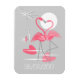 Um par de flamingos cor-de-rosa com pescoço curvado para formar uma forma cardíaca no mar em uma praia iluminada pela lua. Um na moda, design romântico com um toque retrorreflector criado em um esquema de cor rosa, cinza e branco com um fundo de mudança de cor. Um design personalizável para você personalizar com seu próprio texto, imagens e ideias. Uma imagem de arte digital original.
