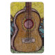 A reprodução de um surreal trabalho de arte de mídia mista enfeita esse ímã único. O ponto focal é uma guitarra caindo ao sol.