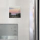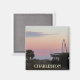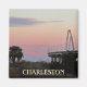 Este ímã mostra uma foto do pôr do sol sobre o rio Cooper em Charleston, SC com a ponte Ravenel e uma árvore Palmetto na silhueta.