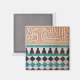 Um belo ímã de captura de olhos. A design apresenta uma fotografia de azulejos mosaicos contrastantes e gravuras em arenito. Sua geladeira se sentirá melhor por um toque de arabesque!
