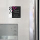 Negra e surpreendente favor de casamento preto moderno contemporâneo ou imã salve o dia com sotaques brancos e fuchsia/magenta, com delicado fundo de folha de rolagem. Personalize online com seus detalhes de casamento.