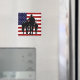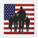 Um belo ímã design de arte digital militar patriótico americano. Este ímã patriótico em forma quadrada apresenta uma bandeira americana com soldados na silhueta na frente. As cores principais são vermelho, branco, azul e preto. É um presente de excelente para alguém que tenha servido ou esteja atualmente a servir no exército dos EUA, um excelente adicional a uma coleção de ímãs patriótica americana, ou um favor para dar aos seus convidados num partido temido patriótico ou militar! Visite nossa loja para ver outros cartões de saudação militares ou patrióticos, selos, convites e outros itens de presentes maravilhosos.