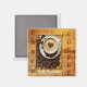 Um ímã fotográfico, com sua própria foto favorita, enquadrado por um design de estilo retrô de tipografia vintage com um tema de café em cores quentes. Um belo presente para um amante de café, bem como para criar uma atmosfera quente na cozinha. Também é bom para uma cozinha no estilo cubano!