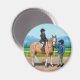 em uma pintura de ímã de 2 meninas e um pônei de palomino. Pintura original de artforhorses.com coleção por Yvonne Hazelton
