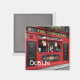 Imã de geladeira de souvenir quadrada com o famoso pub vermelho com as cestas de flores penduradas no bairro de Temple Bar, em Dublin, capital da Irlanda, com o texto "Dublin" em caracteres gaélicos.