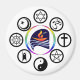 Íman redondo com o logotipo da Igreja Unitária do Pacífico rodeado por 8 das principais religiões do mundo.