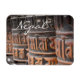 Imagem fotográfica retangular com rodas budistas de bronze fechadas no templo Swayambunath em Katmandu, Nepal, com o texto: "Nepal".