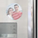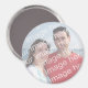 Adicione sua foto e até adicione seu próprio texto facilmente a este ímã. Excelente para futuros casamentos, noivados, aniversário e festas de aniversário, reuniões, eventos especiais, etc. Mostra-se o grande ímã redondo, e também está disponível um ímã quadrado. Faça seu ímã de fotos personalizado hoje!