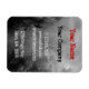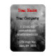 Um imã cartão de visita com vermelho, branco e preto destruído, letras terríveis personalizadas contra uma estrada assombrada com corvos e um céu lua nublado.