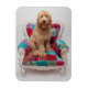 Um feliz Goldendoodle sentado constantemente em uma cadeira colorida e padronizada. Este cachorrinho fofo parece ser maior que a cadeira, mas nunca muito grande para segurar em seus braços. Com a língua a sair, virada para a câmara nesta fotografia, ele fazia o companheiro perfeito. Descubra mais cachorros bonitos aqui no Zazzle com Getty Images.