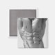 Foto em preto e branco dos abs flexionados do fisiculturista masculino.