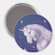 Bonito unicórnio no céu azul estrelado, neste ímã.