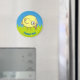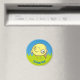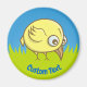 Um desenho animado de pássaros amarelo giro e engraçado sobre a grama e fundo do céu. Texto personalizado.