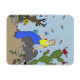 Uma menina em jeans, feita em estilo cartoon, sentada sobre uma rocha cercada por flora e fauna locais do SW. As criaturas incluem beija-flores e beija-flores pretas, coelho, rato, cão de estimação, vários pássaros chuvosos, cacto florescente, veado, algumas plantas de erva-cílios, um casal de borboletas, flores de papoila picante, e alguns girassóis prairie.