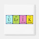 Ulrik escreveu como U Lr I K (Urânio Lawrencium Potássio) num ímã para o cientista em si. Não consegues encontrar o que queres?