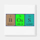 Chefe soletrado como B Os S (Boron Osmium Sulfur) em um ímã para o cientista em você. <br />Localize mais produtos de nome de mesa periódica em<a href="http://mipdatabase.com/products/">mipdatabase.com</a>! Não consegues encontrar o que queres? Em seguida, diga-me o que gostaria na página<a href="http://www.mipdatabase.com/products/request.php">solicitar um produto ().